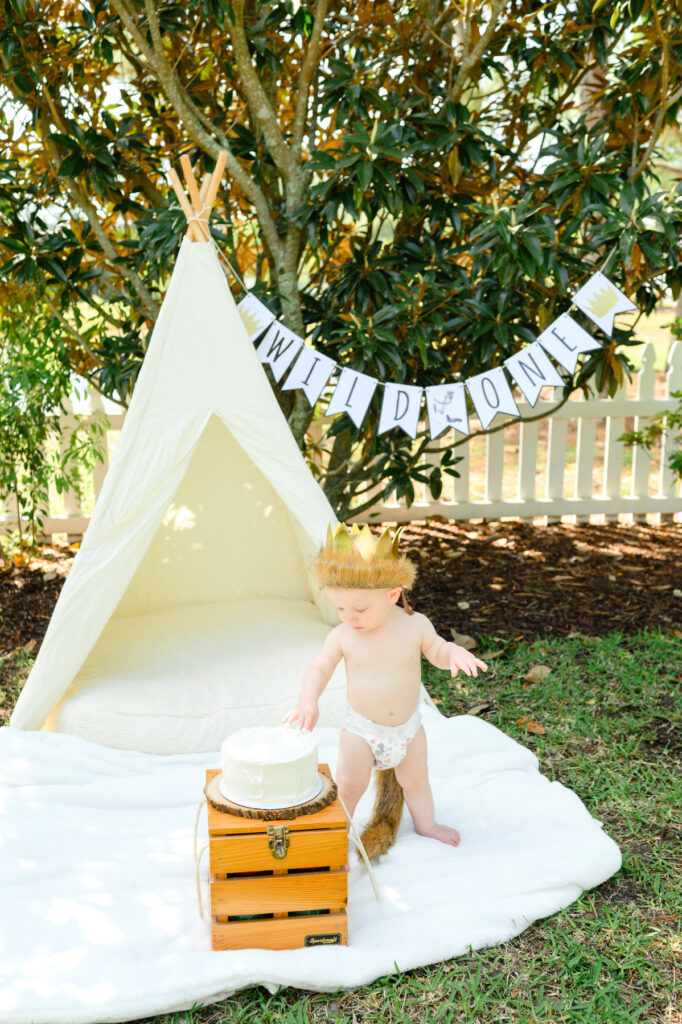 When parents choose a theme, it gives children something to connect to as they grow older. Years from now, Jack will look back and see how his first birthday celebrated his adventurous spirit. The crown, the tent, and even his tiny cake sampling will tell the story of who he was at one year old.